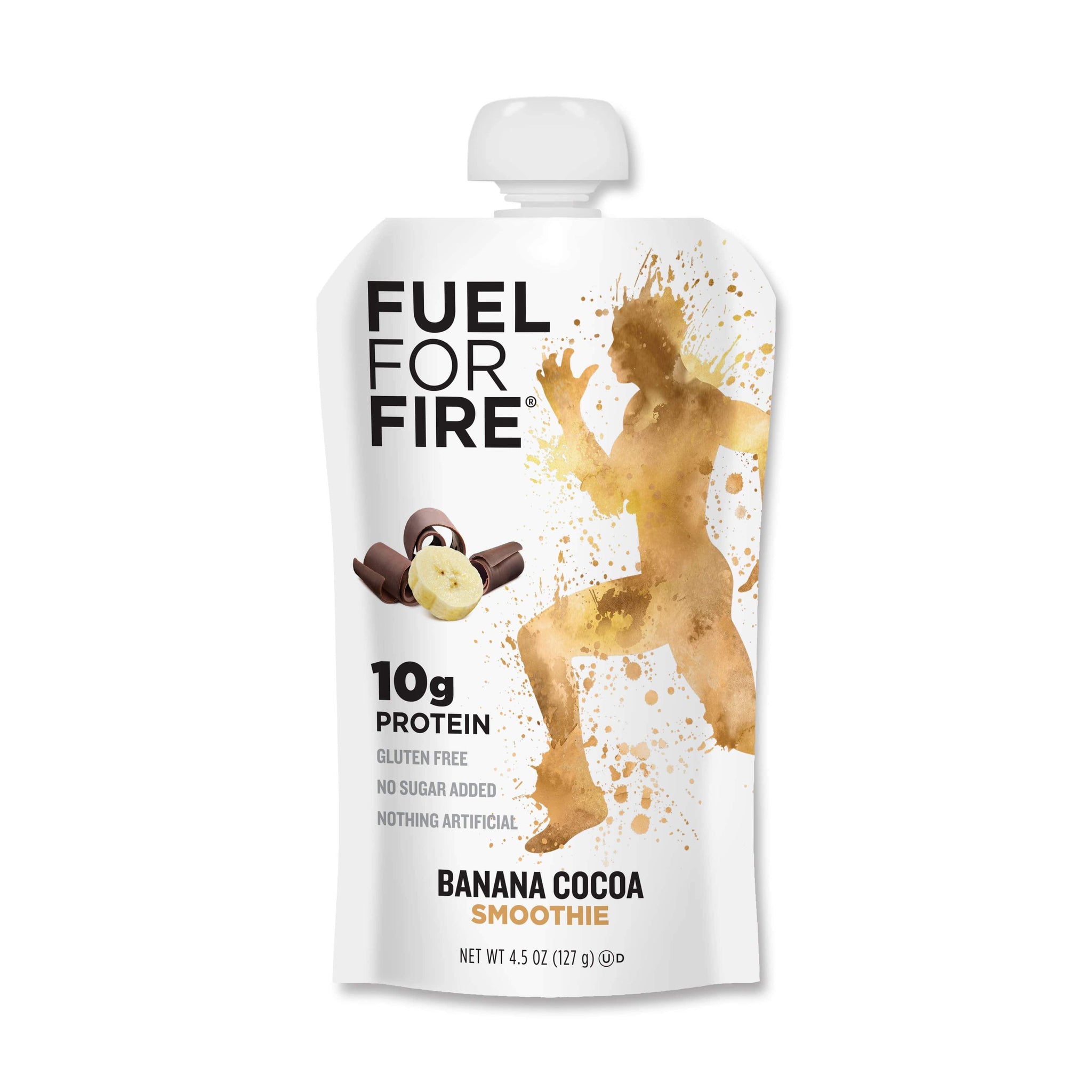 Fuel for Fire is a pre-made smoothie in a convenient, re-sealable squeeze pack that is a great option for well-balanced on the go nutrition. Each pack contains pureed fruits and high quality protein, making it a nutritious source of fuel for any time of day. Each pack contains 10 grams of protein and high quality carbs from good ‘ol natural fruit. It’s a great tasting and ridiculously nutritious way to nutritious, real food, on-the-go.