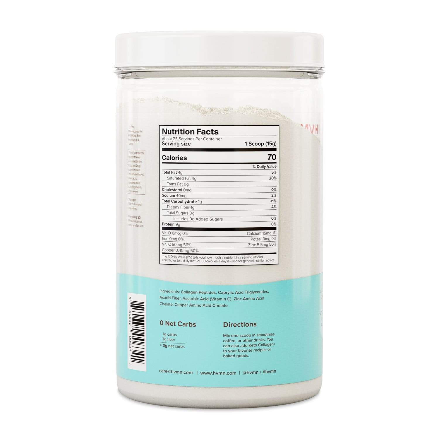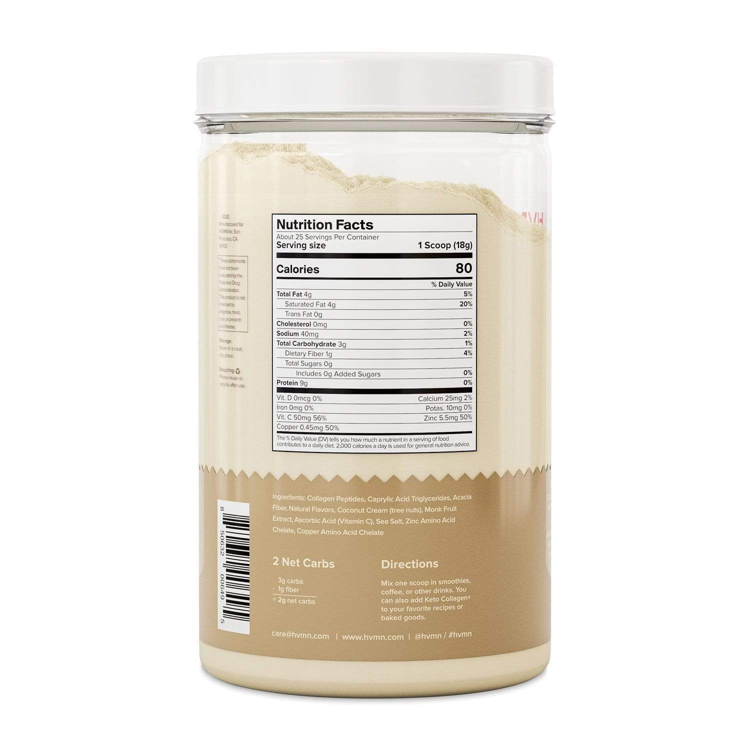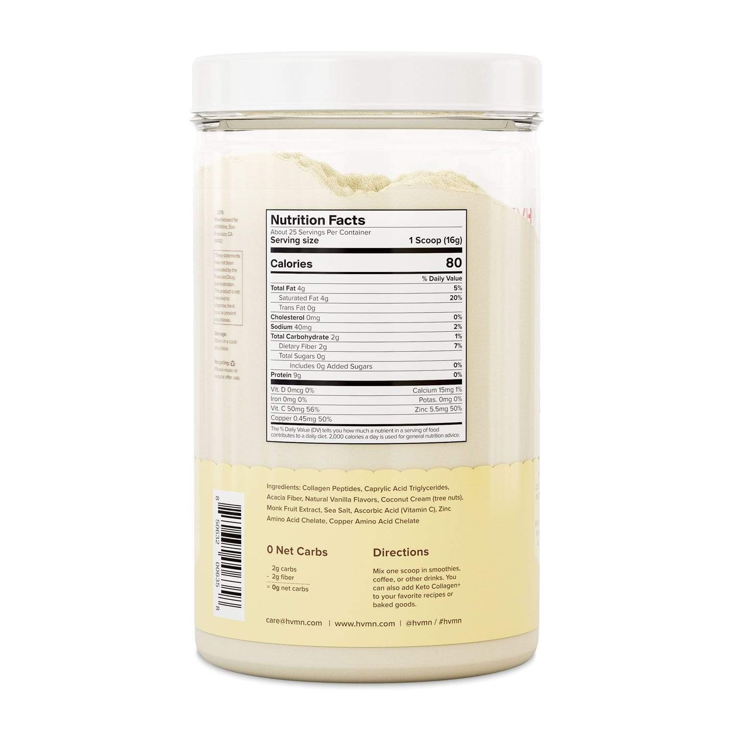 This HVMN Keto Collagen+ gives you all of that and more! It is made with grass fed bovine collagen protein as well as zinc, copper, and Vitamin C, three cofactors that support natural collagen production. This powder has no artificial sweeteners, filers, preservatives or additives and is dairy free, gluten free, sugar free, and kosher compliant! It also contains pure C8 MCT oil powder and prebiotic acacia fiber. Provide essential nutrients for tissues and bones, and protect your body’s collagen from depleting with age with this new keto-friendly collagen supplement from HVMN.