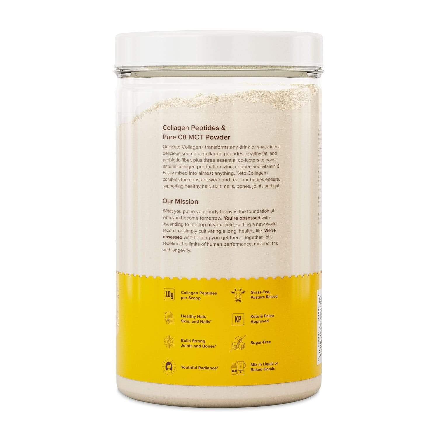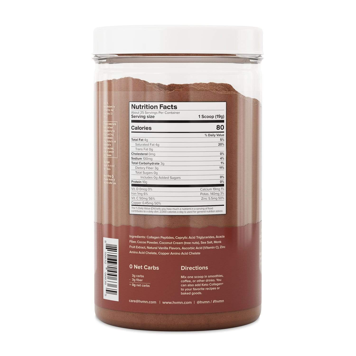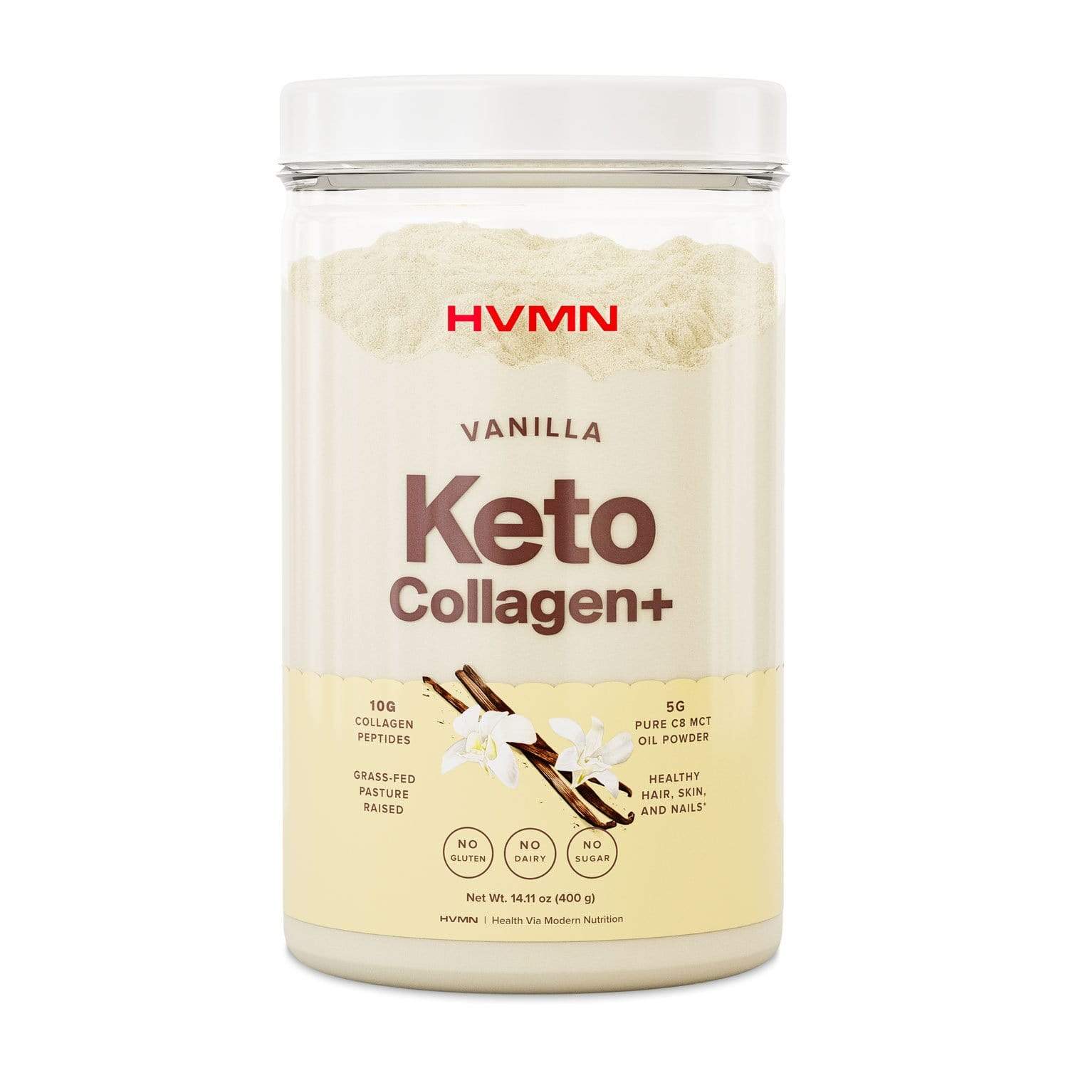 This HVMN Keto Collagen+ gives you all of that and more! It is made with grass fed bovine collagen protein as well as zinc, copper, and Vitamin C, three cofactors that support natural collagen production. This powder has no artificial sweeteners, filers, preservatives or additives and is dairy free, gluten free, sugar free, and kosher compliant! It also contains pure C8 MCT oil powder and prebiotic acacia fiber. Provide essential nutrients for tissues and bones, and protect your body’s collagen from depleting with age with this new keto-friendly collagen supplement from HVMN.