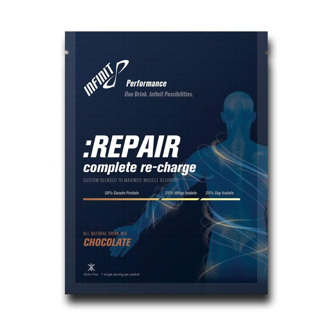 Infinit Repair Fluid Recovery is formulated with a blend of four different types of carbohydrates to replenish muscle glycogen (carbohydrate stores), which become depleted after an intense workout. This recovery drink uses a blend of fast and slow absorbing protein to maximize repair of damaged muscle tissue. The combination of BCAA’s (branched chain amino acids) gives your muscles access to crucial nutrients over the course of several hours after your workout. It also contains glutamine, an amino acid that can help repair gut tissue, which can become damaged during high intensity workouts.