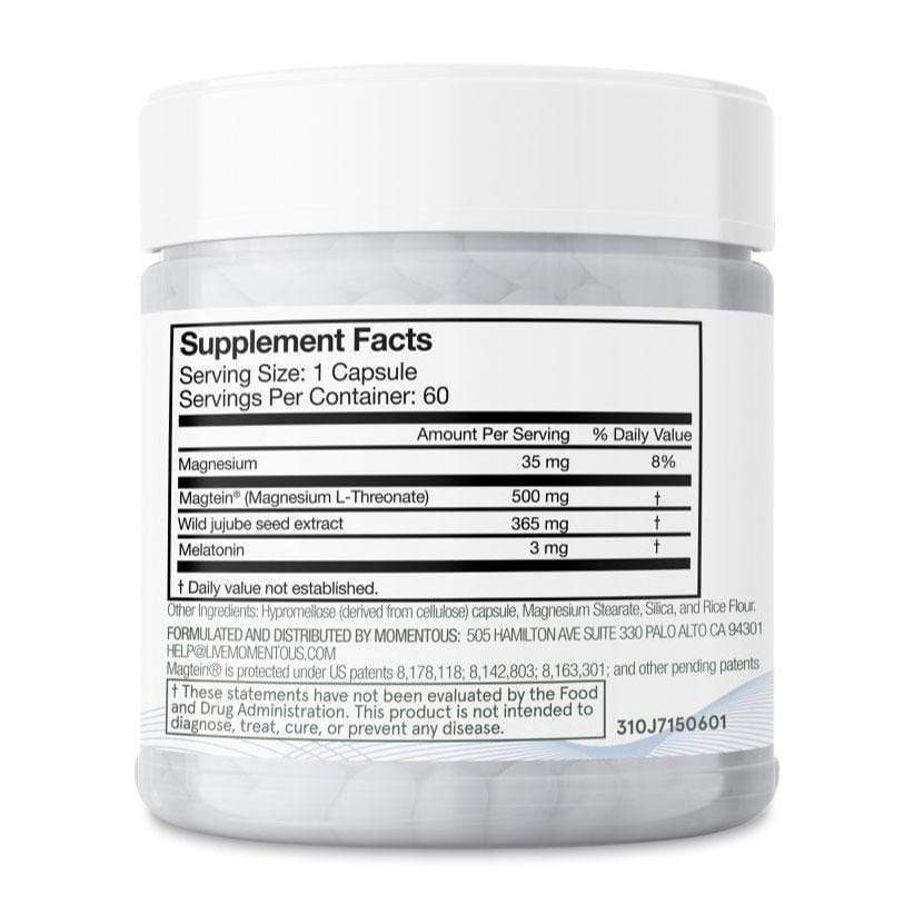 - Magtein: this form of magnesium, unique to Momentous, is the only form of magnesium that has been shown to cross the blood-brain barrier. This helps improve cognitive health, which is key for reducing sleep disorders, managing anxiety and stress, and more.