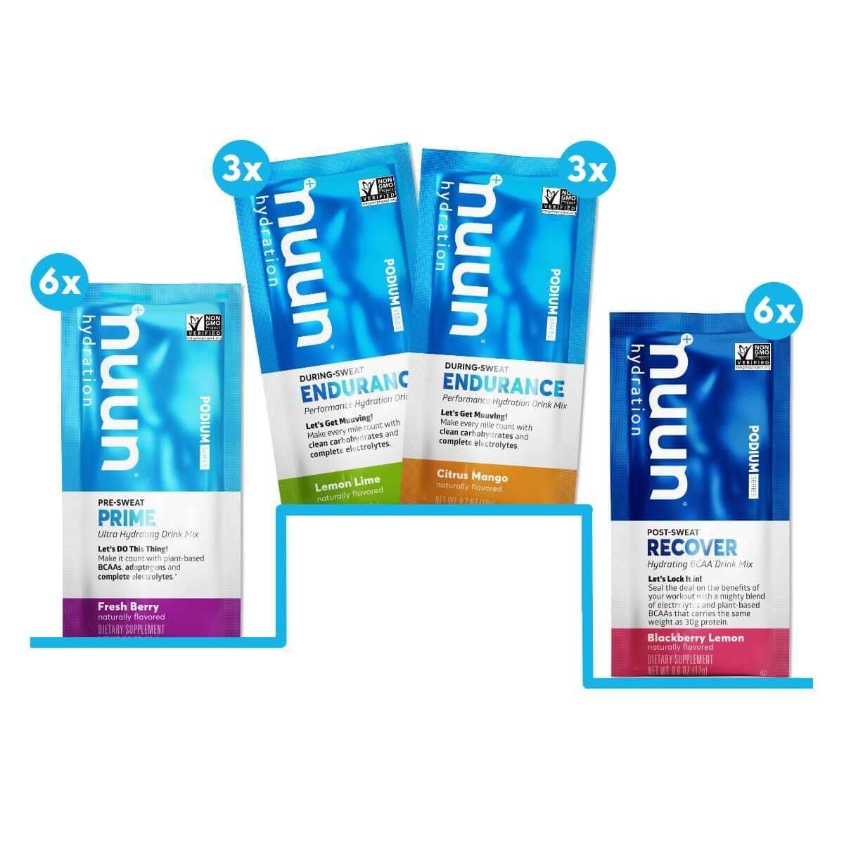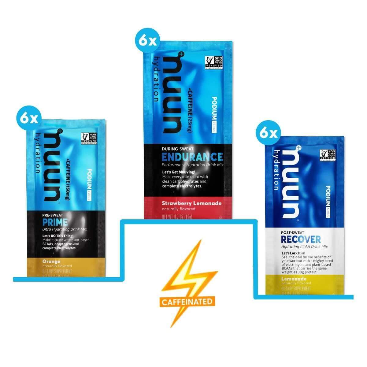 Your Nuun Podium Series 6 Workout Pack comes in a Caffeinated and Caffeine Free Version (you choose)