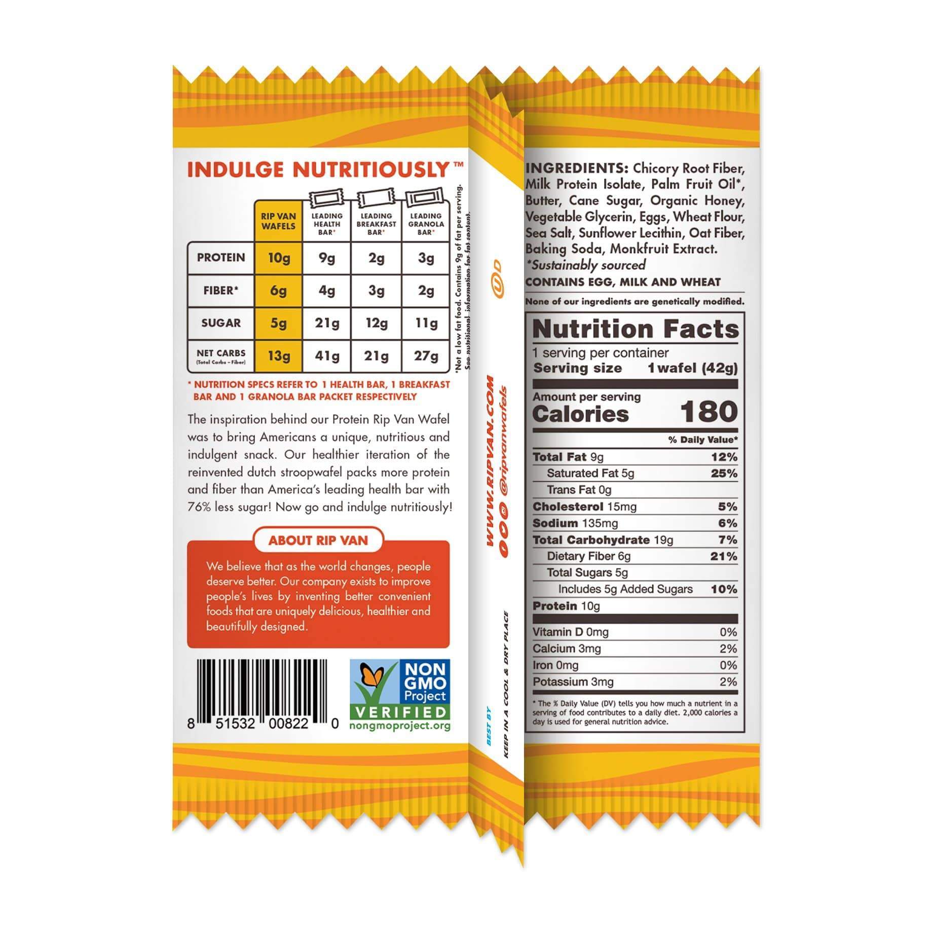 A Rip Van Wafel is distinguished from your standard waffle. Inspired on the traditional Amsterdam stroopwafel but much lower in sugar (3g) while still delivering on the carbs (19g), dutchman Rip started making these in his dorm room as a college senior at Brown University.